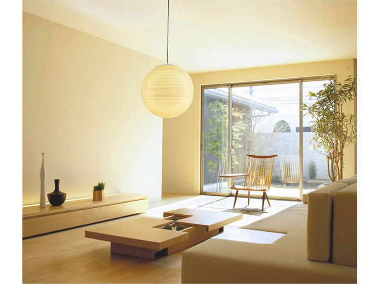 It has a double structure with a shade decorated with Japanese paper on the inside, giving it an impressive sense of elegance and depth.