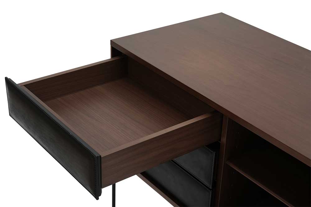 Enjoy the luxurious feel of the high-quality leather and the smooth movement of the drawers, which allows them to open and close smoothly, as well as the modern beauty of the thick leather, which brings out the delicate design of the bellows.
