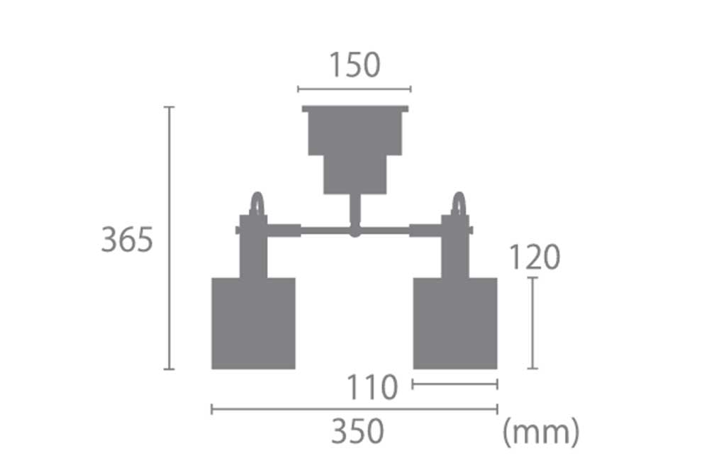 Size: W350 x D150 x H365 mm  (Shade: φ110 x H120 mm, Flanges: φ150 mm)