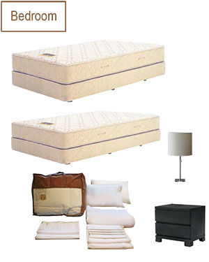 Queen-Size Bed, Queen Beddings, Night Table x 2, Night Lamp x 2