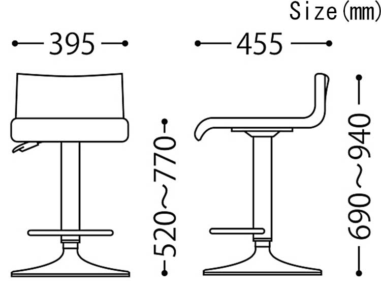 Size: W39.5 x D45.5 x H69-94(SH52-77) cm