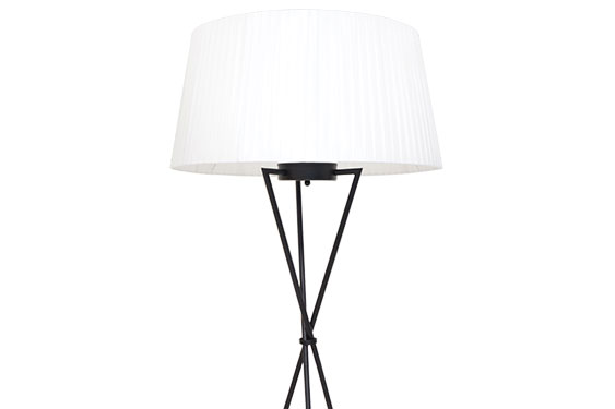 The texture of the large ribbon shade creates a soft, three-dimensional impression. The three black legs give a sharp impression, and the design is easy to use in any space.
