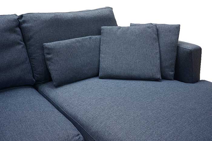 A stylish corner sofa with a beautiful indigo blue color of the upholstery.