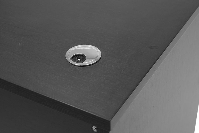 There are two easily removable cable holes for your computer at the back of the desktop.